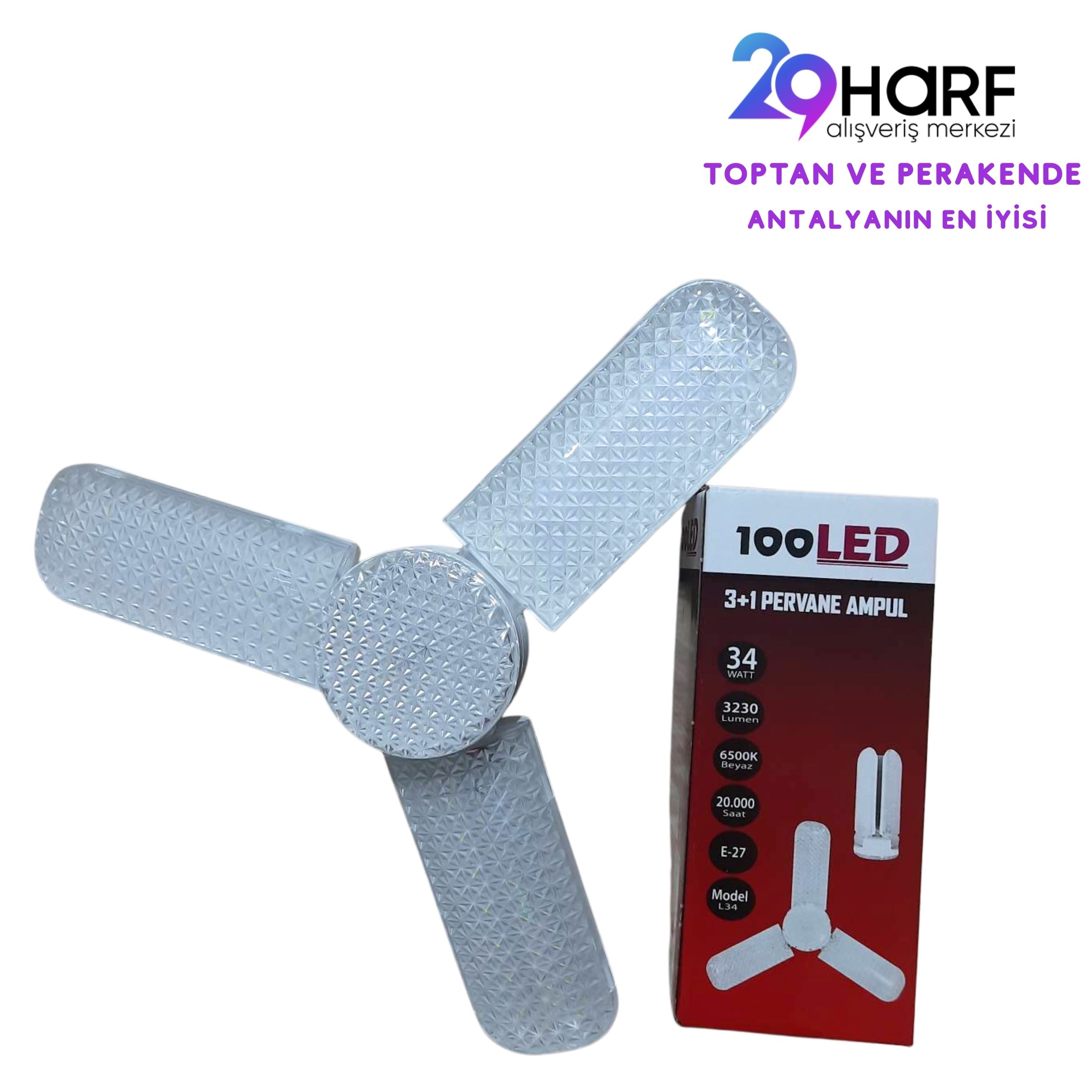 100LED 3+1 KRISTAL PERVANE AMPUL 34W 6500K 3 KANAT
