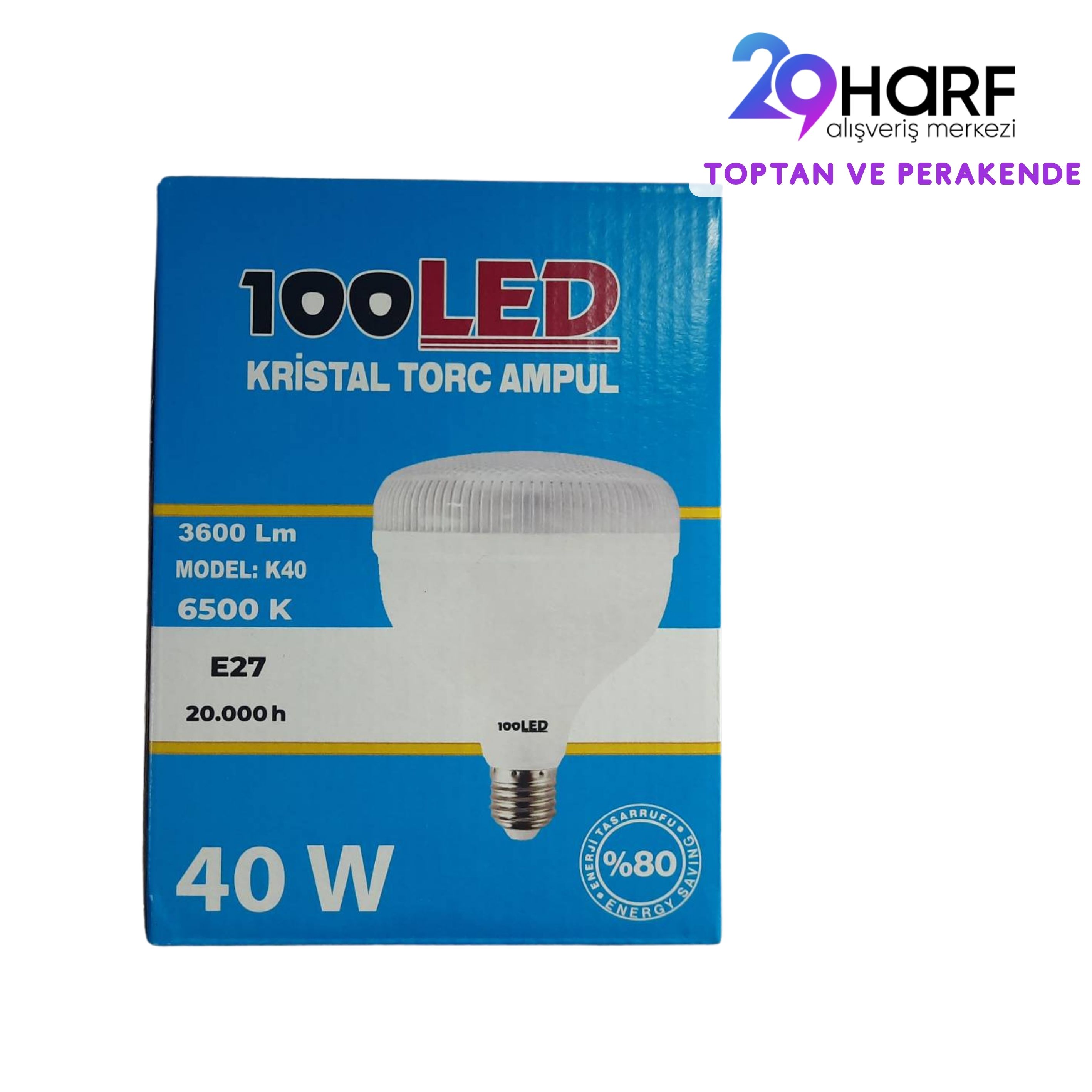 100LED K40 KRISTAL TORCH AMPUL 40W 6500K BEYAZ