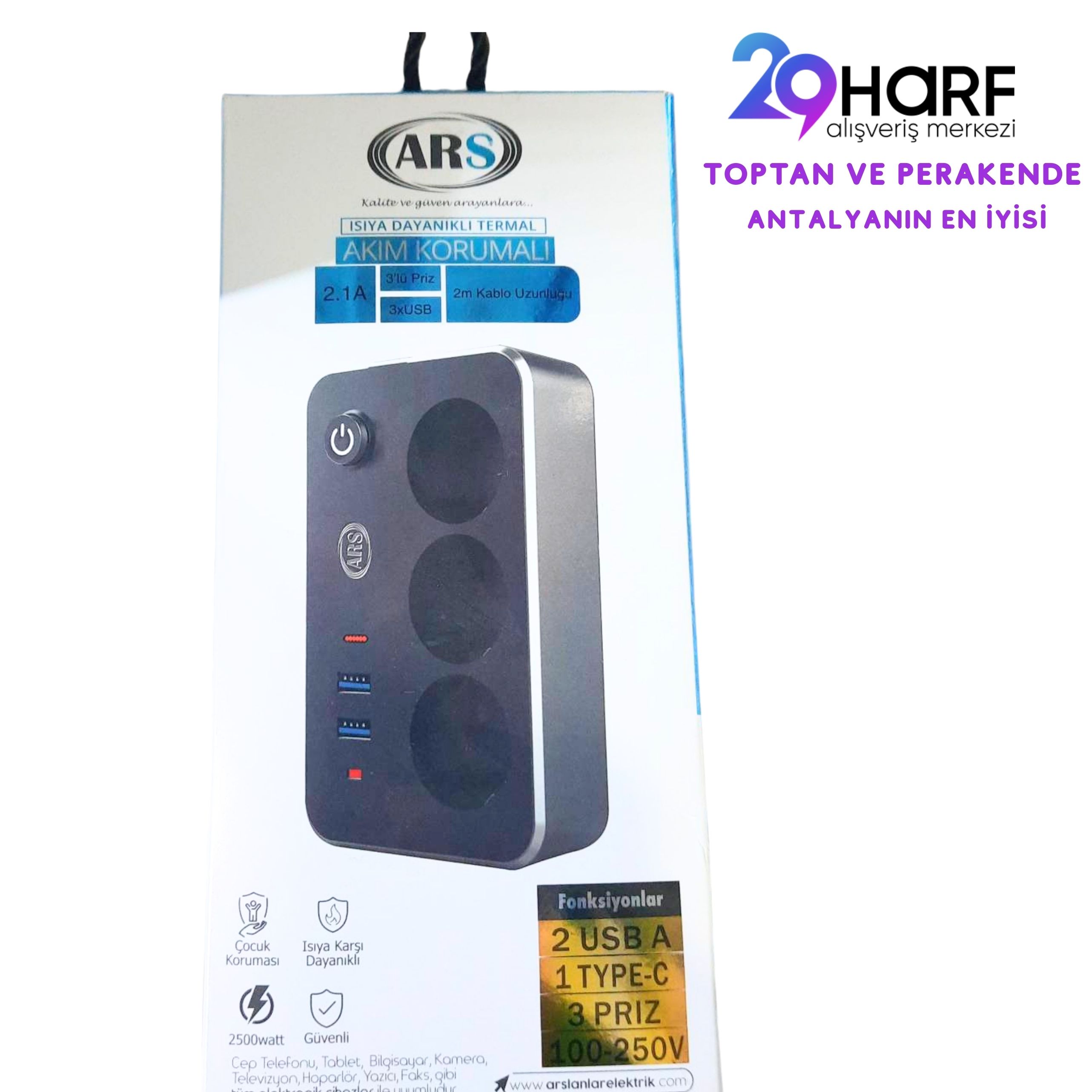 ARS 348763 AKIM KORUMALI 3lu ANAH.2 USB 1 TYPEC 2mt kare